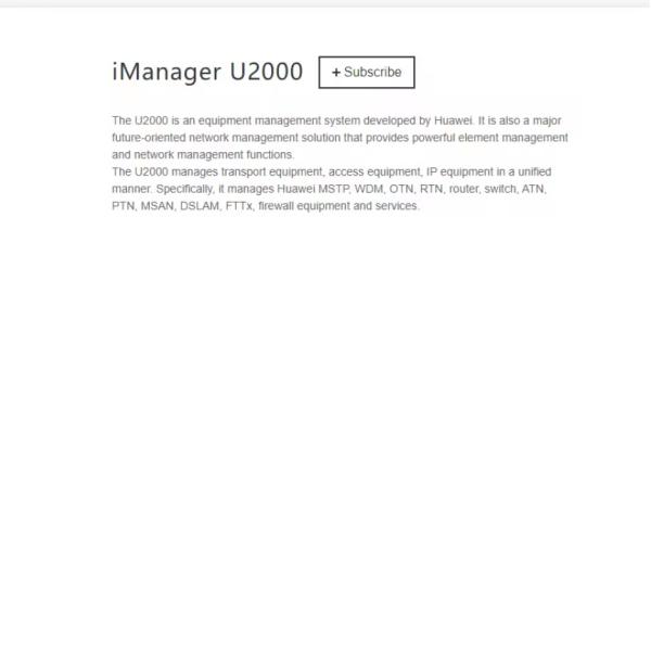 The iManager U2000 inherits all the functions of the original T2000, N2000 BMS, and DMS systems, and manages Huawei transport, IP, and access equipment in a unified manner. It uses scalable and modular architecture to meet various network management requirements and supports smooth upgrade from single-domain management to multi-domain management in order to meet the requirements of integrated network development.